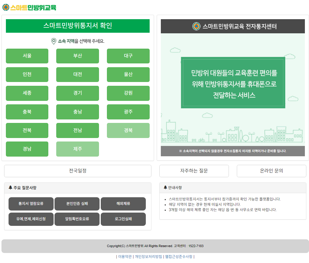 - 주요특징 : 국내 지자체 약 100군데 민방위 서비스 진행 중